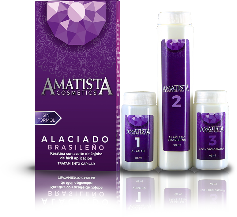 Con el alisado Brasileño Keratina de Amatista Cosmetics además de restaurar las hebras capilares, obtener un brillo y una sedosidad impresionantes podrás dar un efecto muy duradero a tu alisado.